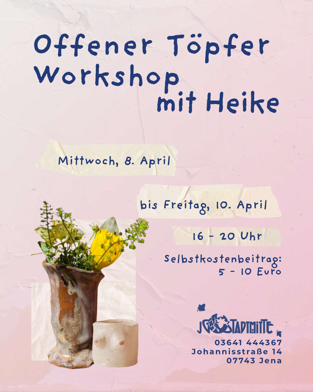 In den Osterferien, vom 08.04. – 10.04. wird es im Offenen Café wieder die Möglichkeit geben, aus Ton kleine und große Kunstwerke entstehen zu lassen. Anmelden müsst ihr euch nicht, kommt einfach vorbei!